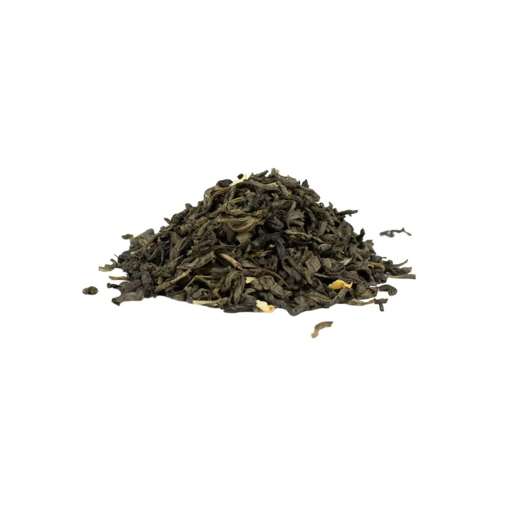 Deze verfijnde groene thee is verrijkt met jasmijnbloesem. De bloemige geur en delicate smaak zorgen voor een elegante theebeleving. Jasmijn thee is ideaal voor liefhebbers van zachte en aromatische thee.