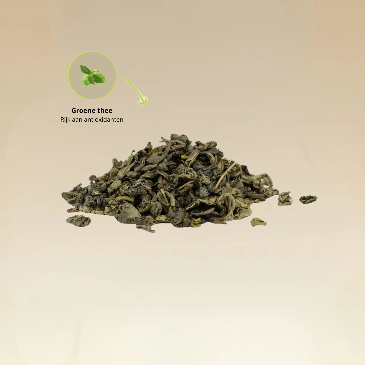 Het wordt gemaakt van groene theebladeren die strak worden gerold tot kleine bolletjes, waardoor de thee zijn versheid langer behoudt.
