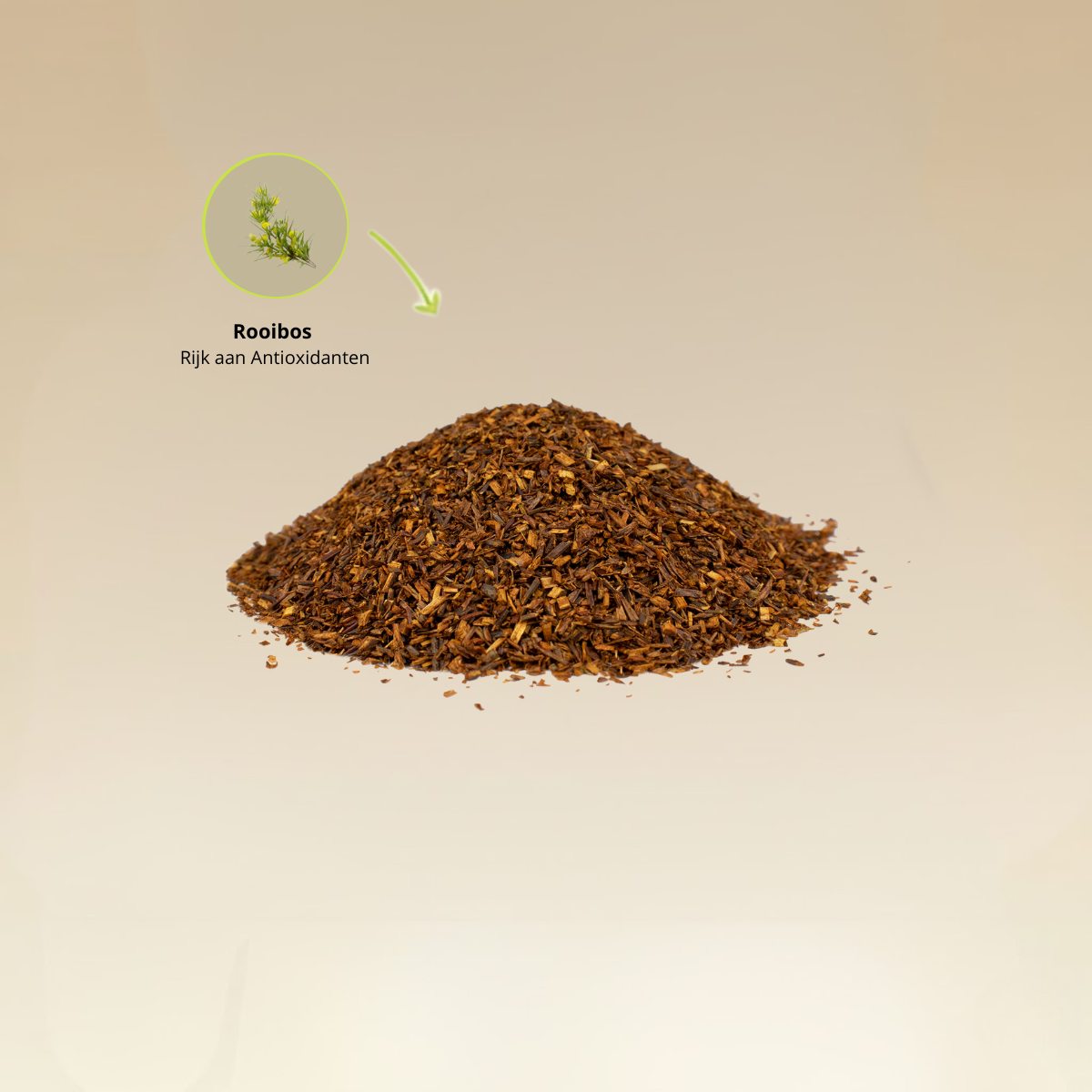 - • Kalmerend en stressverlichtend: De natuurlijke eigenschappen van rooibosthee helpen je te ontspannen.